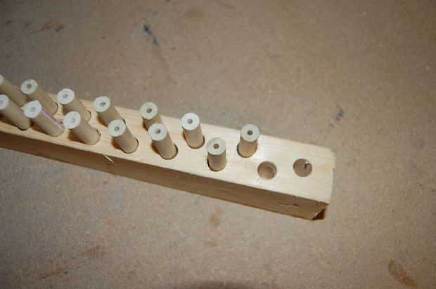 Si usted está haciendo un montón de sierras, también puede hacer una rejilla de secado. Es un 2 x 4 con un montón de agujeros en ella.