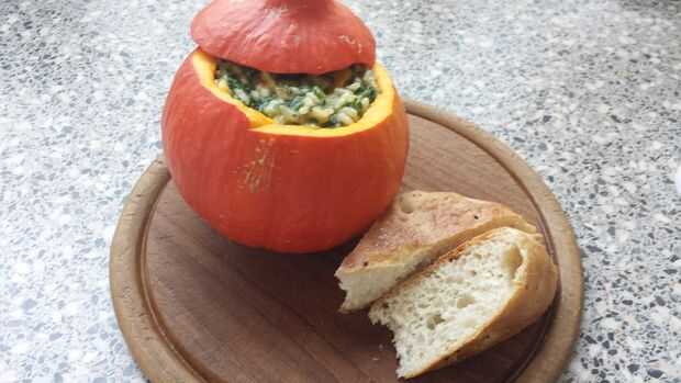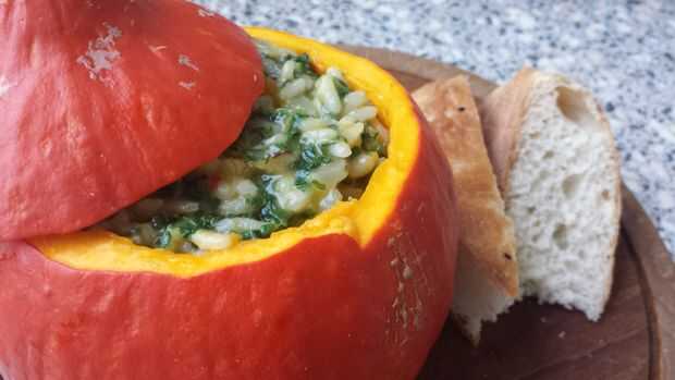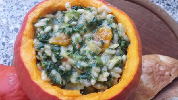 Calabaza Risotto con col rizada servido en una calabaza (4 / 4 paso)