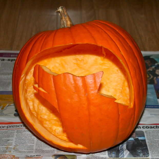 Al quitar un pedazo grande de calabaza puede ser más fácil cortar trozos más pequeños a la vez.