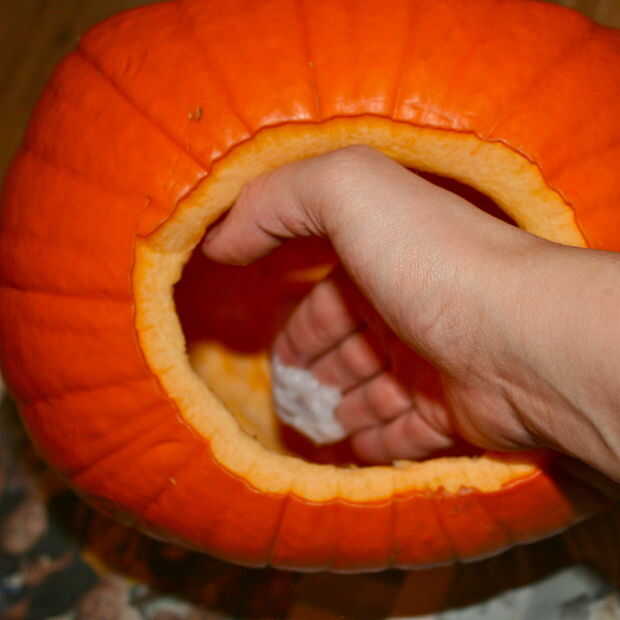 Un paso opcional antes de la iluminación es cubrir la calabaza con la jalea de petróleo. Esto se significa para ayudar a preservar de la putrefacción si decide esculpirlos anteriores a un día o dos antes de halloween.