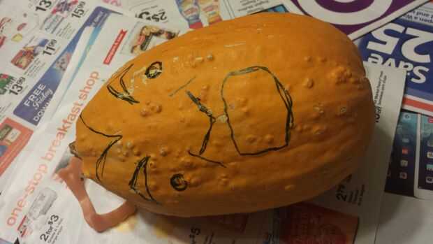 Mi primera y única calabaza tallada en mi vida. Chistoso