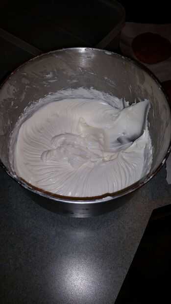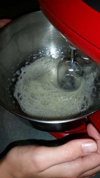 Empezar por poner su huevo en un tazón, no ponga los yugos en. Luego bata las claras hasta que se ven como imagen 1. A través de todo lo que otros ingredientes en el vaso, batir todo junto con un mezclador y entonces debe tener eventualmente la vainilla formación de hielo como en la figura 2.