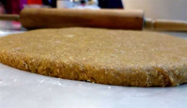 Usar su balanceo perno y en un espacio cubierto de harina (yo uso papel encerado debajo para limpiar fácil), el rodillo la masa plana en un mínimo de 1/4 de pulgada de espesor. La clave para este paso es para hacer las delicias del mismo grosor, a pesar de los posiblemente diferentes tamaños (longitudinal) de delicias.