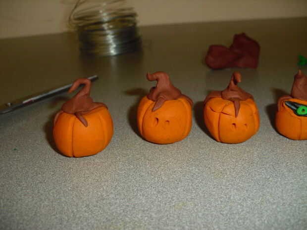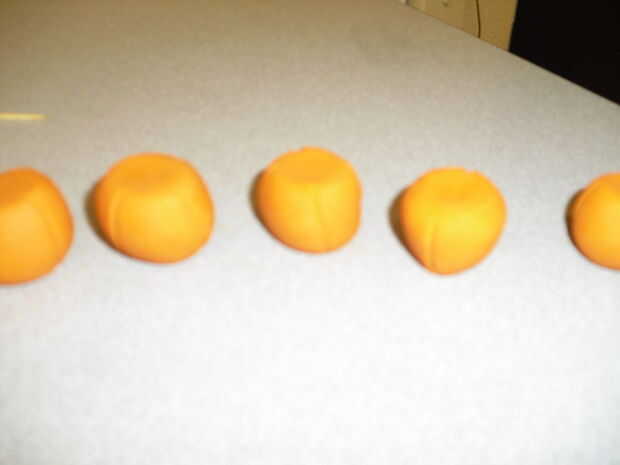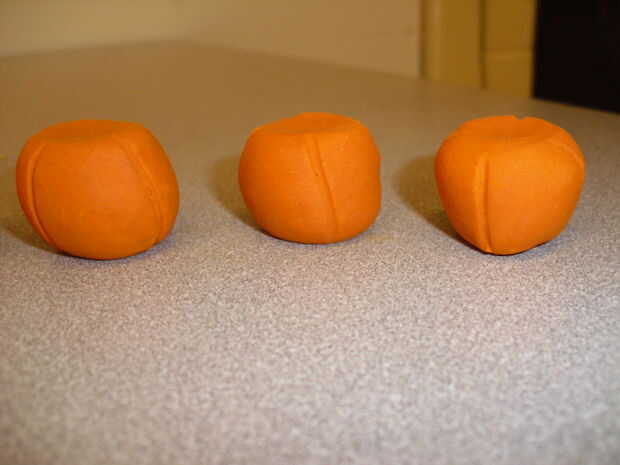 Comience con la naranja, lanzar una bola de arcilla y moldear en una calabaza.