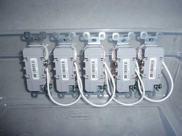 En el otro lado de la salida será tornillos de plata este es el lado neutro (cable blanco). Conectan todas las partes neutrales. Ahora en el otro lado donde quitó la ficha Conecte un cable (negro) al tornillo superior y un cable (negro) con el tornillo inferior. Los cables negros se conectados a los relés. (Ver foto para detalles) Ahora tome un extremo de enchufe de un cable de extensión. El alambre blanco del cable se conectará a los cables blancos en las salidas. El cable negro se conectará a la placa de relé por medio de buss.