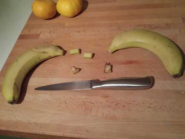 Cortar los extremos del plátano en pequeñas cigüeñas.