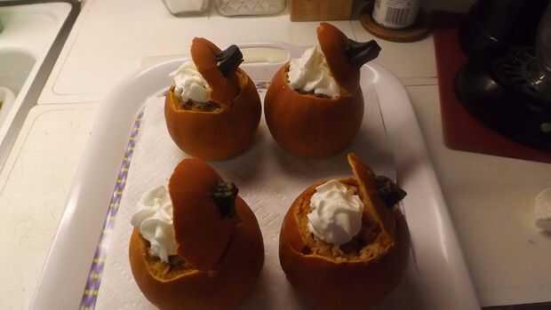 • * Realmente esperaba poder encontrar algunos realmente cool decoraciones de Halloween para "pegar" en las cáscaras de calabaza relleno de pudín, pero no he podido encontrar nada que me. Deje que su imaginación le conducen a través de este paso final!