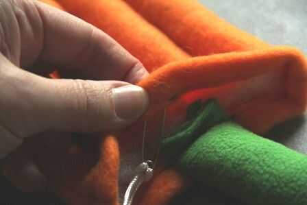 ingredientes:-50 gramos de lana naranja de mecha (utilizamos calabaza y mango, ñame o plátano sería encantador)-30 gramos de lana verde luz de mecha (hemos utilizado chícharos)-30 gramos de lana verde oscuro de mecha (hemos utilizado espárragos)Herra