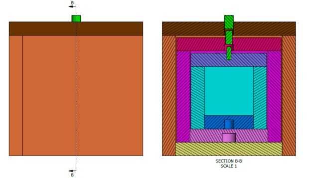 Las calabazas están diseñadas para apilar dentro de uno a otro para el almacenaje fácil. La vista de corte transversal muestra el espacio libre alrededor de todas las partes.
