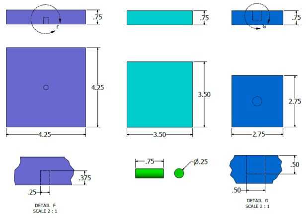 Hacer una superior (vista izquierda) y una parte inferior (vista derecha) y los cuatro lados a las dimensiones indicadas. Usé un taladro para los agujeros ciegos. Corte una clavija de 1/4" a 3/4".