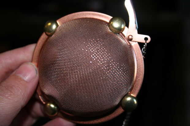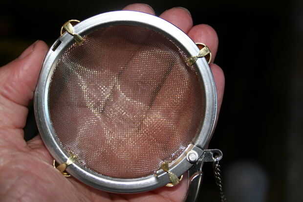 2. Coloque las manchas redondas en la zona que deseas en el colador de té y dóblelos en su lugar con un par de alicates.