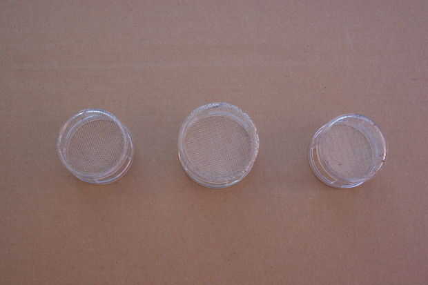 2. Estos son plásticos coladores de té. Usé estos para los ojos y había decorado con puntas de árbol del metal.