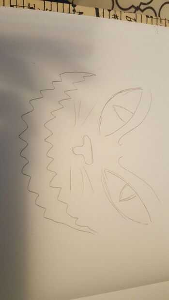 Este es el bosquejo áspero para el gato de Cheshire. También usé piezas extra de calabaza para oídos.