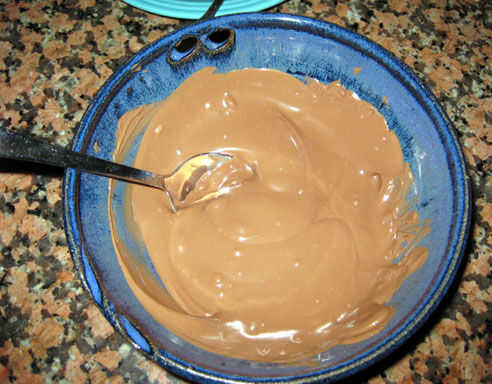 Poner algunos derretir chocolate en un cuenco y nuke en 30 intervalos de segundos hasta que se derrita. Ten cuidado, porque hay una ventana muy corta entre 'bastante derretida' y 'quemados y asqueroso' que desea caer.