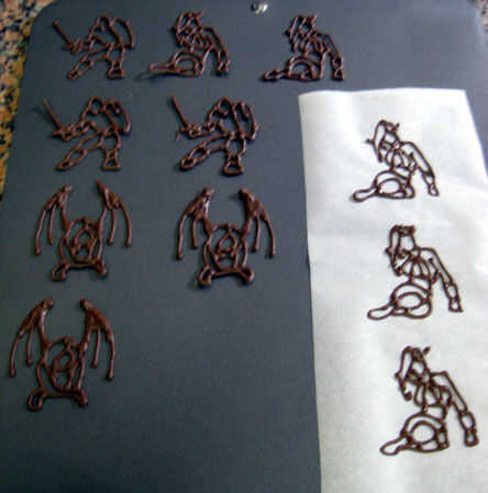 Rastro hasta que te conviertes en una persona loca. Las figuras de chocolate son muy frágiles, por lo que no es una cuestión de si algunos rompen, sino de cuántos. Hacer extras.