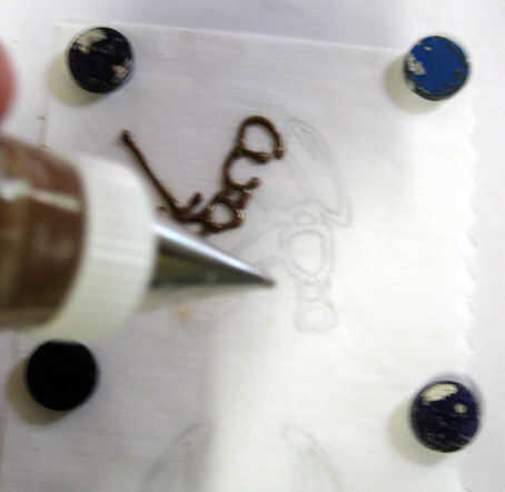 Mantener un ojo en la consistencia de su chocolate derretido mientras trabajas. El calor de tus manos lo refresca abajo te retrasará, pero finalmente, lo hará. Una vez que se inicia cada vez difícil exprimir, vaciar la bolsa así como puedas en un recipiente y nuevamente lo destroce.