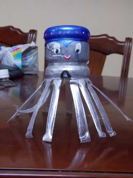 Las vacaciones son tiempos en que me gusta hacer cosas con mis hijos sin dejar de mencionar que la escuela alienta a los niños en la fabricación de artesanías como esta para entender mejor la vida. más encima es un arte de la basura así que no cuesta una Rupia. Durante las vacaciones de pooja hicimos este pequeño calamar (que es el nombre de mi hija le dio. Esto puede no parecer muy parecida a un calamar pero puede imaginar que es uno:-p).