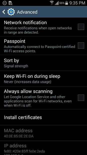 - Cambio Wi-Fi mantenga sobre durante el sueño nunca