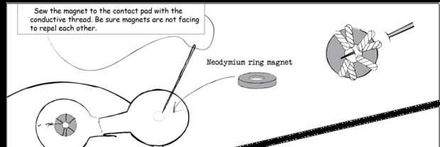 Coser el imán a la almohadilla de contacto con el hilo conductor. Asegúrese de que los imanes no se hacia se repelen.
