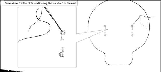 Coser alrededor del bucle varias veces para hacer una buena conexión sólida. Ate en un nudo y cortar el hilo sobrante.