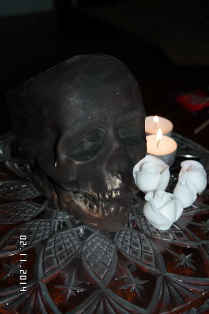 Hice un molde con silli (http://www.sillicreations.com/) y una botella de vodka, en forma de un cráneo, prestado de un amigo.
