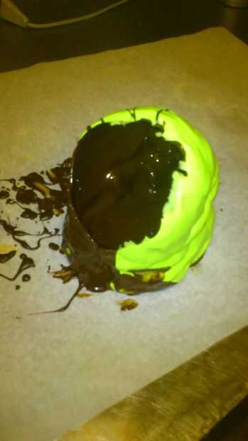 Hice esta operación 3 veces. Si vierte a mucho chocolate a la vez que será gris y el chocolate saldrá de genio (dichos residuos).