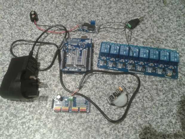 No hay nada complejo con el cableado, las conexiones SDA y SCL están en pines A4 y A5 respectivamente. No hay necesidad para una conexión directa de PWM de la Junta Directiva como esto es todo cuidado por el mismo tablero servo.