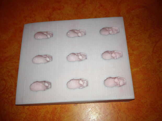 Dar el molde de un lavado con jabón y agua en el fregadero. Deje que se seque completamente antes de echar el chocolate. Agua hace cosas malas al chocolate cuando está echando.