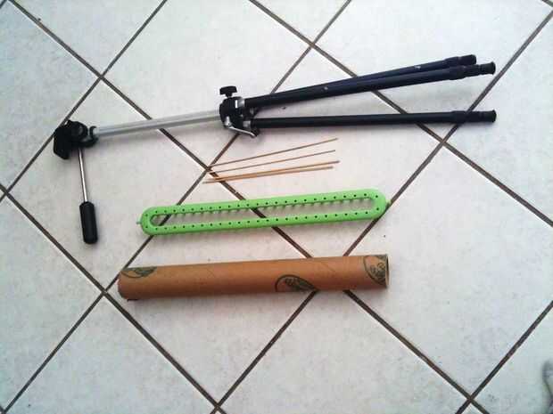 Wow, Qué suerte haber encontrado algo que buscaba para encontrar! Ahora todo lo que necesitaba hacer era averiguar una forma para colocar el telar al trípode sin cerrar el centro del telar que debe permanecer clara para el paso de la bufanda hecha punto y también una manera de hacerlo desmontable. Quizás quiero hacer otro uso para el trípode en el futuro.