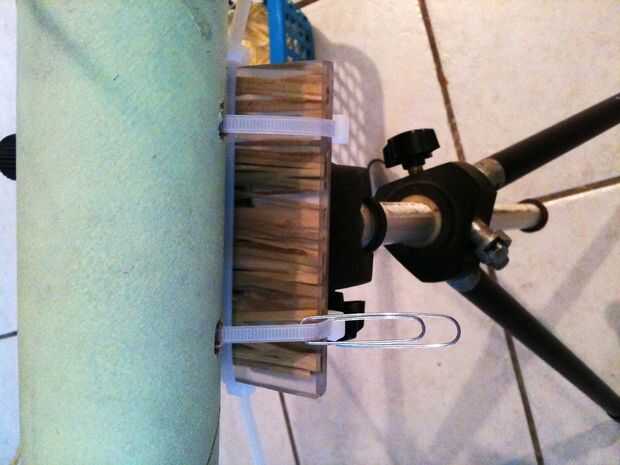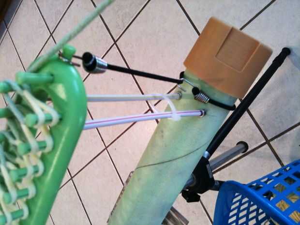 Ahora es el momento de abrazaderas de plástico, cuerdas del amortiguador auxiliar y clips de papel. Si te fuiste para la opción del Velcro y luego tienes que añadir lazos zip a través del correo electrónico tubo y alrededor de lo 4 "X 4" madera y plástico.
