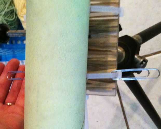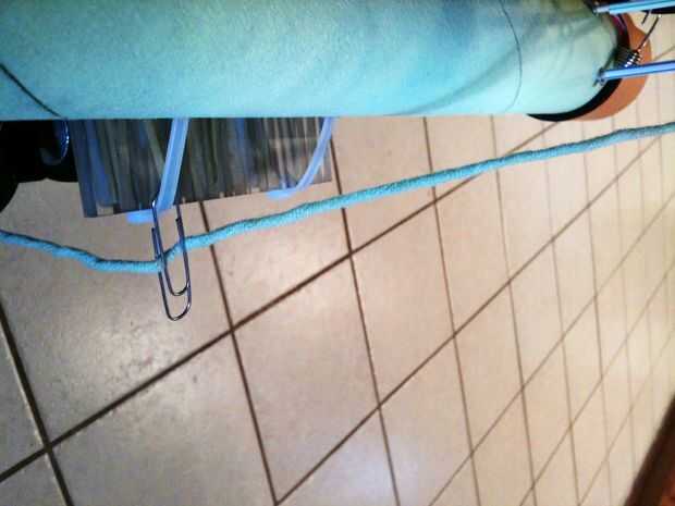 • Fije los clips de papel a las ataduras de cremallera a cada lado como se ve en la foto. Estas son sostener el hilo mientras estás lejos de tu proyecto.