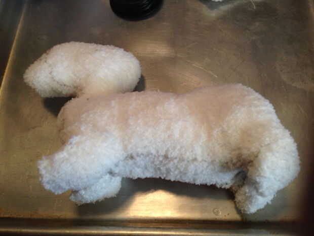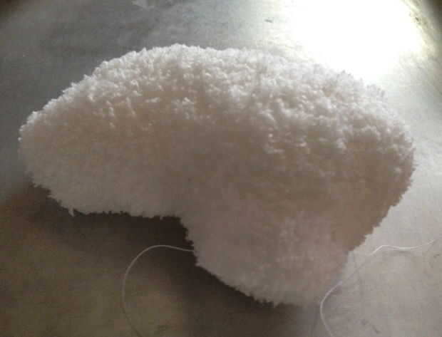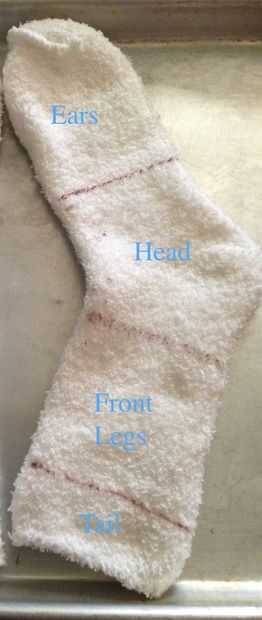 Este es un perro que hice hace años, con mi madre. Él hizo de calcetines gris y blancos y un calcetín entero para su cuerpo. Sus ojos y nariz son botones. ¿No es lindo?