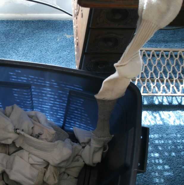 Hacer un buen montón de calcetines junto a la máquina de coser.