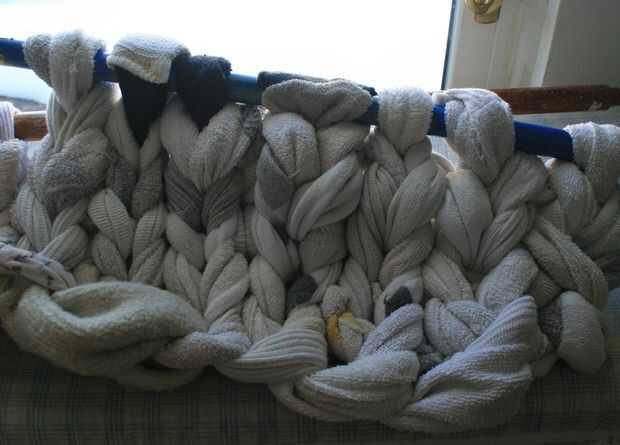 El manómetro (XL) del hilo necesario tejer grandes pernos de. Usaba palos de escoba.