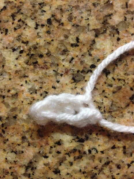 Con hilo blanco ch 3, gire.