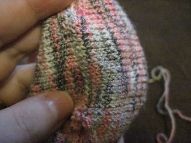 Para comenzar a corta el hilo dejando una cola de por lo menos dos veces la longitud de la abertura a la izquierda en el dedo de su calcetín (generalmente dejo 3 veces la longitud sólo para estar seguro).