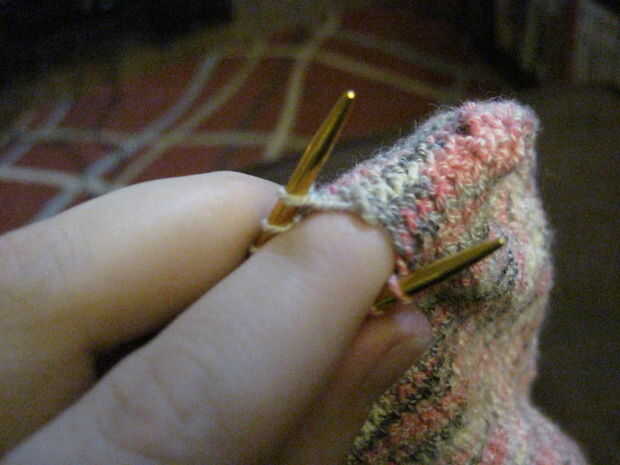 Repita el paso 3 y 4 hasta que todas las puntadas son de las agujas de tejer. Ajustar la tensión para realizar el injerto como los puntos de sutura en el resto del calcetín entonces tejen en los extremos de su hilado.