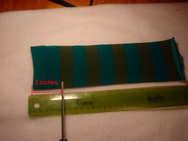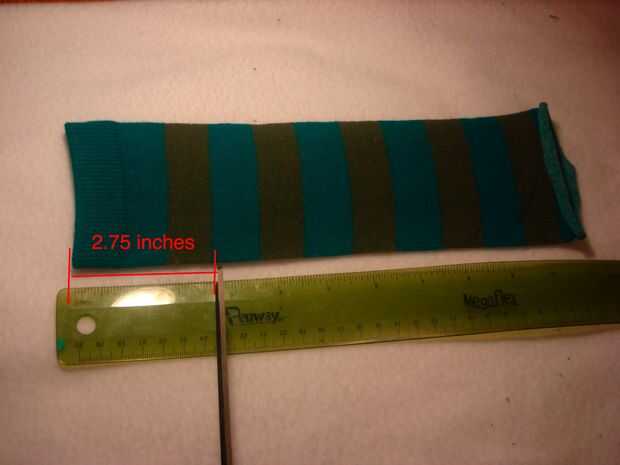 Corte un.75 la raja partidas 2 pulgadas desde la parte superior del calcetín.