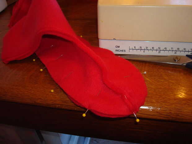 Nota: Al coser el resto de las costuras de este proyecto, una estrecho zig zag puntada en lugar de una puntada recta asegurará que las puntadas no se romperán al estirar los calcetines al ponérselos y teniendo.