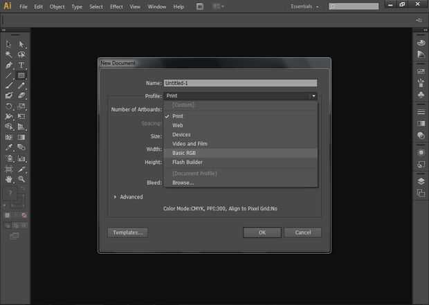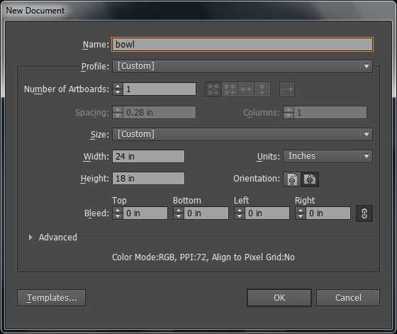 Hacer un documento nuevo utilizando la plantilla básica RGB (el láser sólo leerá las líneas de corte de espacio de color RGB).