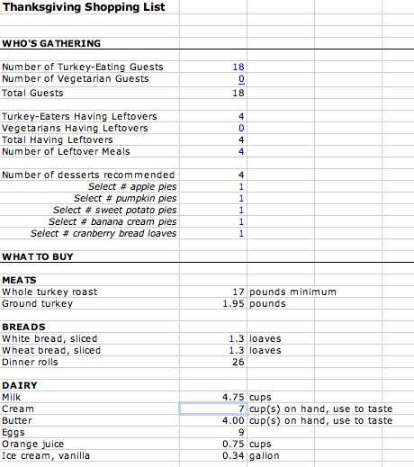 La calculadora de acción de gracias: Cómo organizar y cena navideña de cocinero por una multitud (42) utilizando hojas de cálculo
