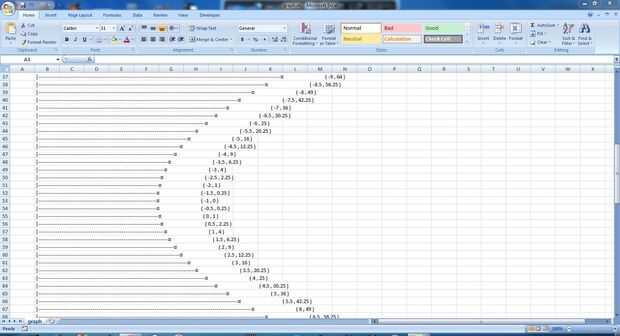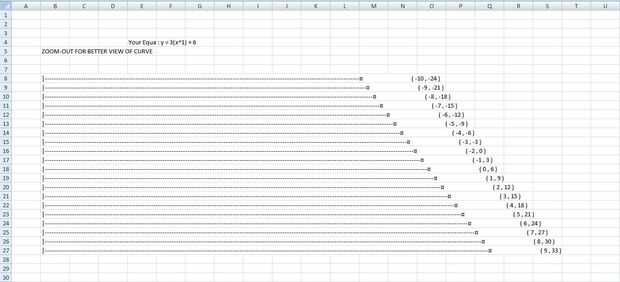 Una vez que tenemos las coordenadas, podemos parcela el gráfico bastante fácilmente. Ahora, hay varias formas de hacer esta como descargar un archivo de encabezado independiente / creación de funciones definidas por el usuario. La forma más fácil que se me ocurrió es utilizar setw() función de espaciado Horizontal y "\n" para espaciado vertical.