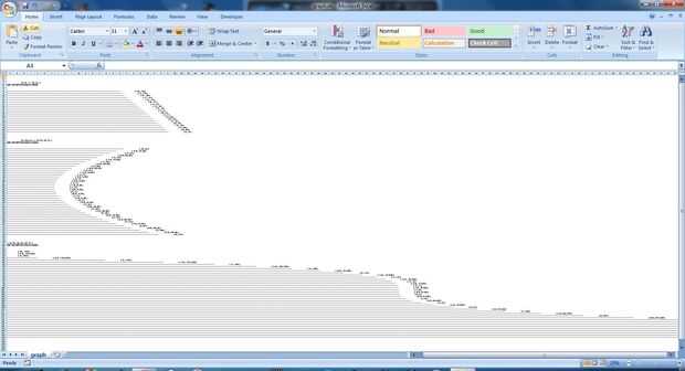 Además, usé Microsoft Excel para ver mi salida principalmente debido a tres razones. Uno, la salida no sería correcto en la ventana de salida de C++ (por lo menos en mi caso) y en segundo lugar, Excel tiene mucho espacio disponible para el trazado, que yo tengo mucha libertad para trazar los gráficos con números más grandes. Y por último, uno puede Zoom - IN/OUT para ver el gráfico (curva) o el points(co-ordinates).