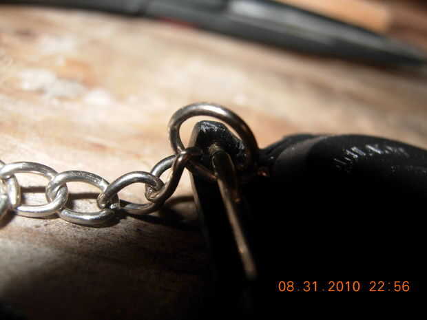 Pase la cadena sobre la barra donde la banda solía ser.