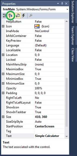 Paso 2: En la ventana Propiedades, en la propiedad de texto tipo calculadora Simple