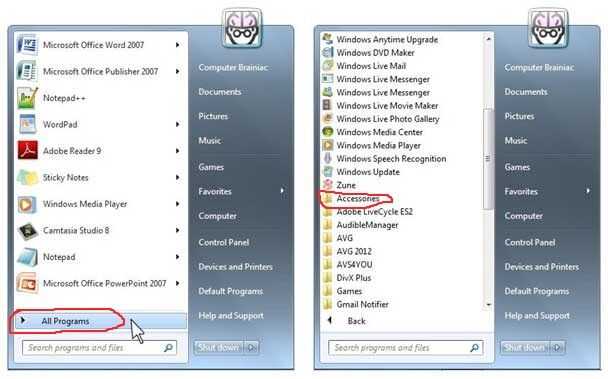 A continuación encontramos la aplicación de la calculadora dentro de archivos. So. Siga adelante y haga clic en todos los programas. y luego en el lío de carpetas y cosas para descargar. Seguir adelante y encontrar una carpeta con accesorios.
