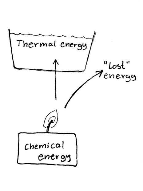 Cada vez que "utilice" energía, sólo transferir energía de un lugar a otro. Esta transferencia suele ser también de un tipo de energía a otra - en este caso de la energía química almacenada en una vela de té a la energía termal en agua.