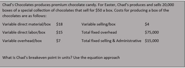 Para este Instructable, voy a utilizar el ejemplo de la compañía de Chocolate de Chad para ilustrar los pasos necesarios para encontrar el Breakeven point en unidades.