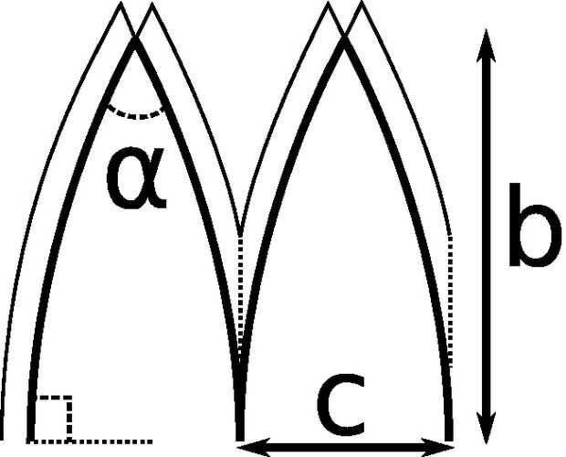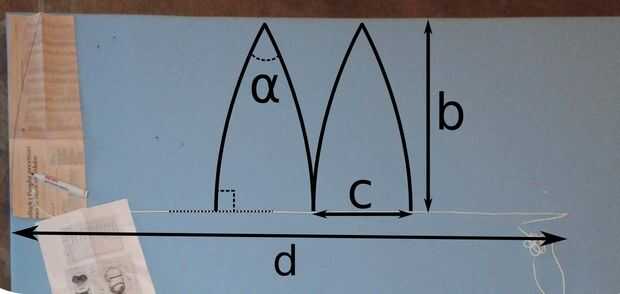 Ahora uso un trozo de cuerda de la longitud d y coloque el centro en una distancia b de la parte superior y dibujar el arco.