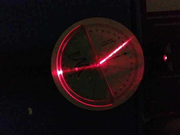 Brillar el láser a través de la parte plana de la bandeja, como se ve en la configuración anterior. Usted no observará ninguna refracción cuando brilla normal a la cara plana. Comience a girar la placa y registrar el ángulo de incidencia y el ángulo de refracción de por lo menos 2 ángulos de incidencia diferentes. Registrar los resultados en una tabla. En este diagrama, usted no puede ver el rayo de incidencia claramente. Debido a esto, tomamos el rayo reflejado desde la parte plana de la bandeja. El ángulo del rayo reflectante trasero es el mismo que el ángulo de incidencia.